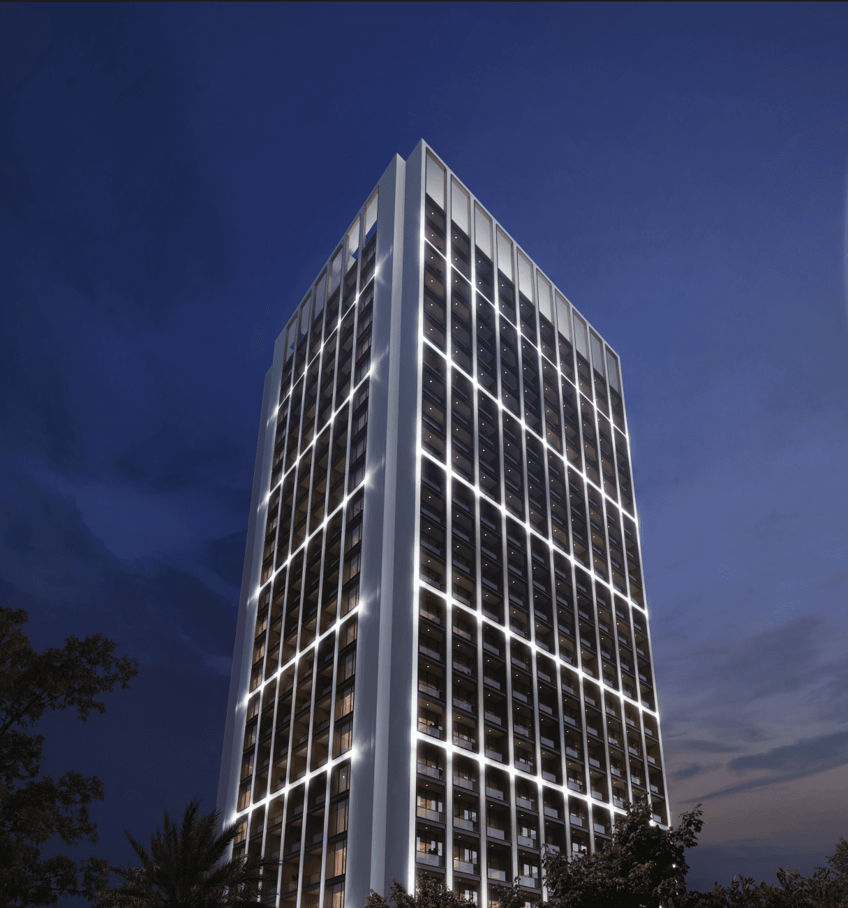 Moonlight's architectural presence offers profound reflection. Its silhouette, rising with elegant precision, is a modern aesthetic composed with crystalline glass façades.
